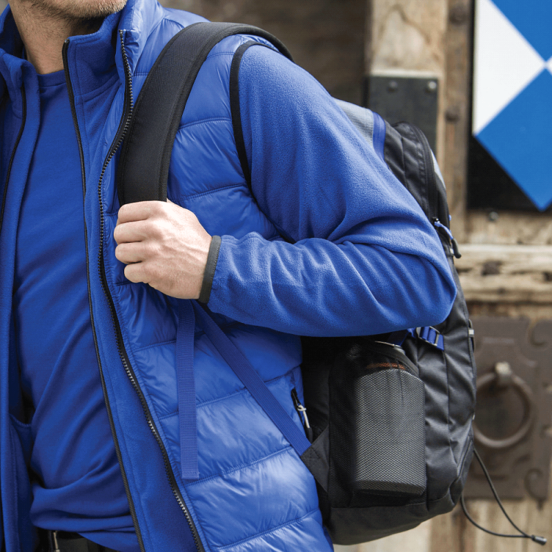 The Zippered main compartment has a padded laptop sleeve and elastic organiser band to hold your mobile accessories, including power banks and cables.