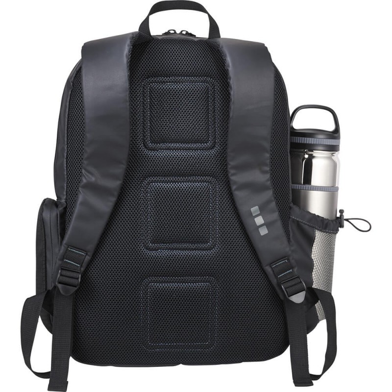 With its clean lines, this stylish and functional backpack has plenty of features to ensure that everything you need to carry, works. 300D polycanvas|Front zippered pocket|Large main zippered compartment for maximum storage|Padded computer compartment fits up to a 15” laptop|Padded and adjustable shoulder straps|Padded back for additional comfort|Side...