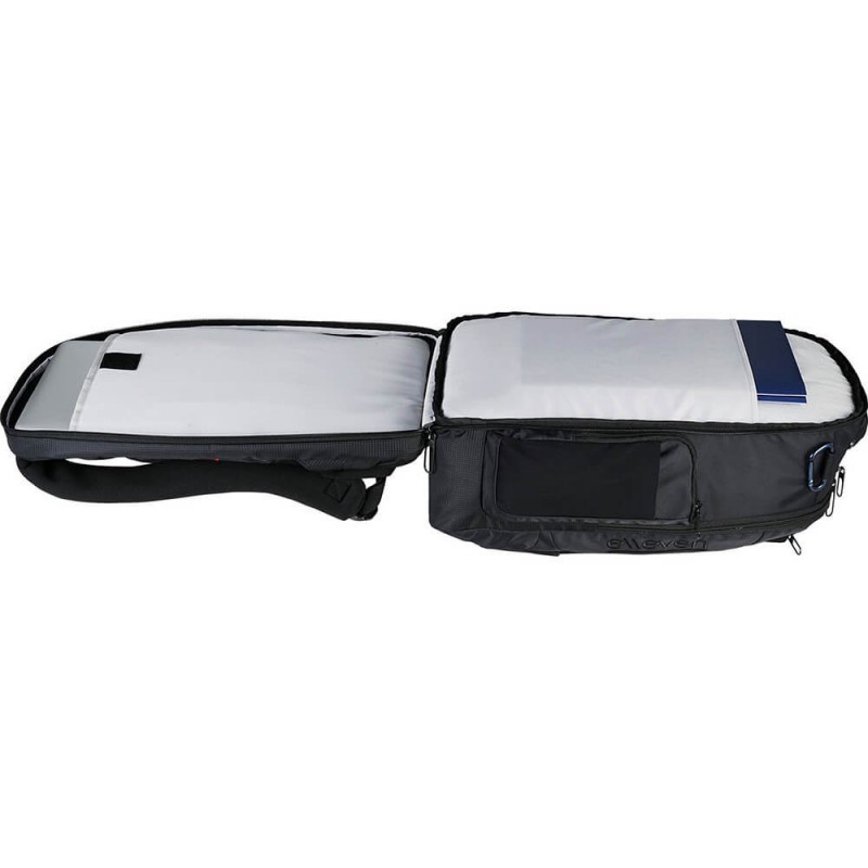 Laptop-only section unfolds lying flat on X-ray belt expediting airport security. Holds most 15 inch laptops with zippered main compartment and front pocket containing deluxe organisation panel and key ring. It also features a zippered top pocket with organisation and earbud port, side pockets, adjustable padded shoulder straps and carry handle.