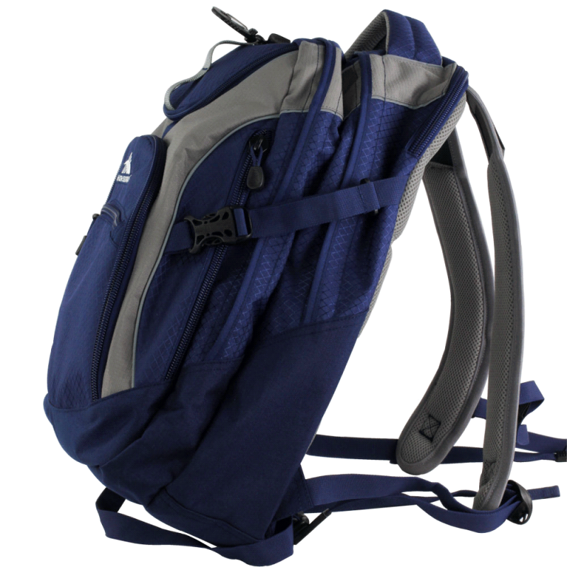 Affordable backpack which is manufactured from 600D polyester. It has a zippered main closure and adjustable woven shoulder straps with padding. Other features include a large zippered front pocket, a woven carry handle and a mesh drink bottle holder.