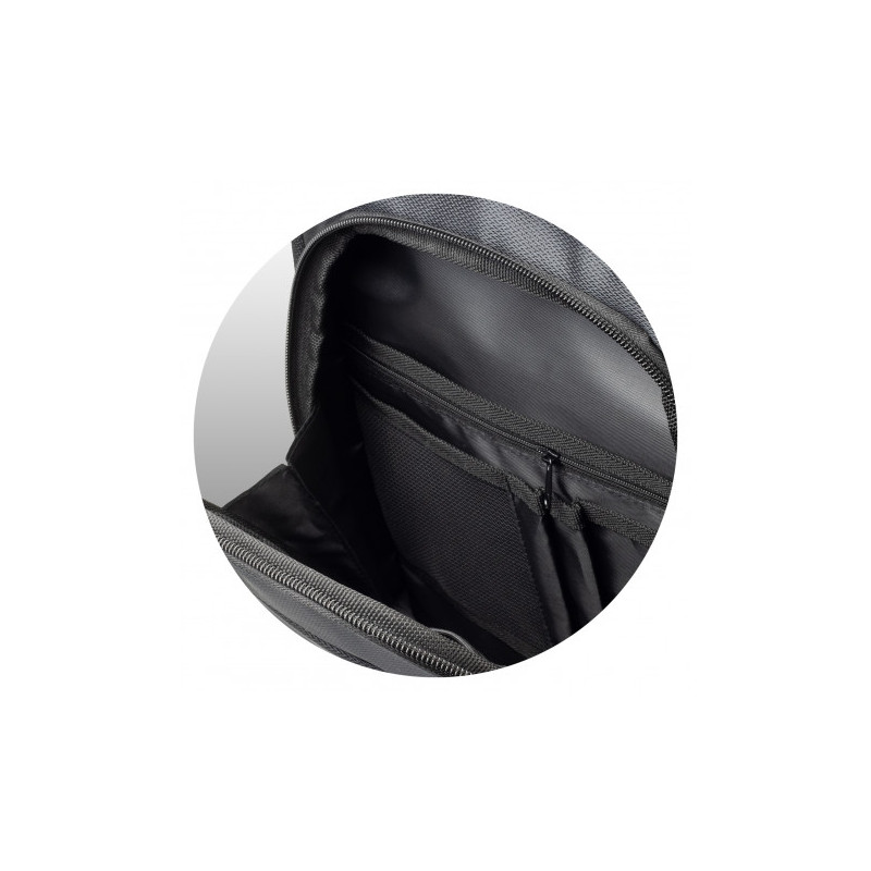 The Zippered main compartment has a padded laptop sleeve and elastic organiser band to hold your mobile accessories, including power banks and cables.