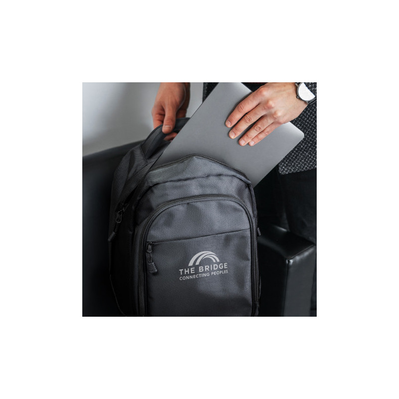 Backpack with two compartments which is manufactured from 600D polyester with decorative ripstop nylon accents and smart coloured piping. It has a padded back for comfortable carrying, padded woven shoulder straps which are adjustable and a fully padded internal laptop compartment. Other features include an internal pocket for a tablet, a zippered front...
