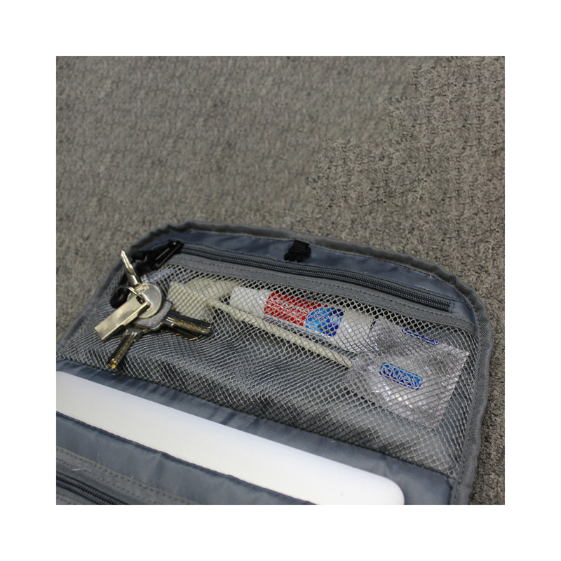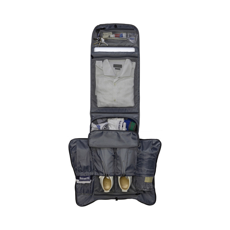 Laptop-only section unfolds lying flat on X-ray belt expediting airport security. Holds most 15 inch laptops with zippered main compartment and front pocket containing deluxe organisation panel and key ring. It also features a zippered top pocket with organisation and earbud port, side pockets, adjustable padded shoulder straps and carry handle.