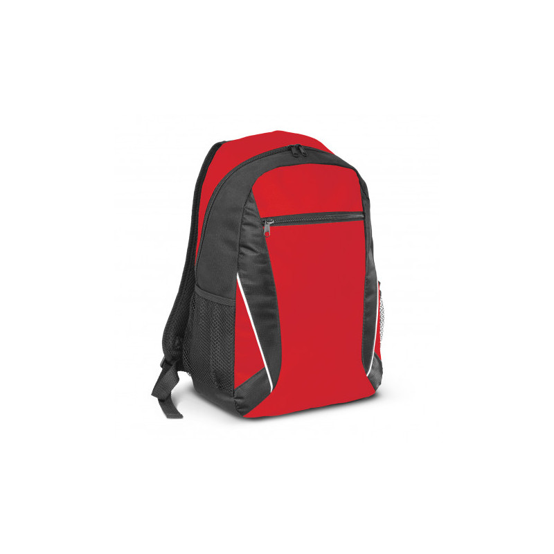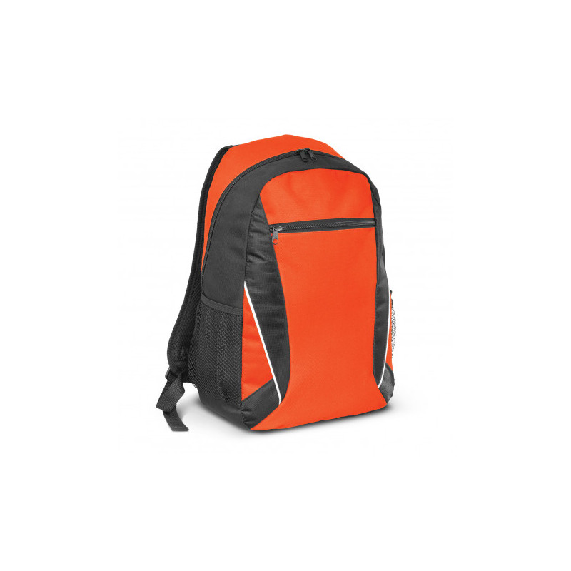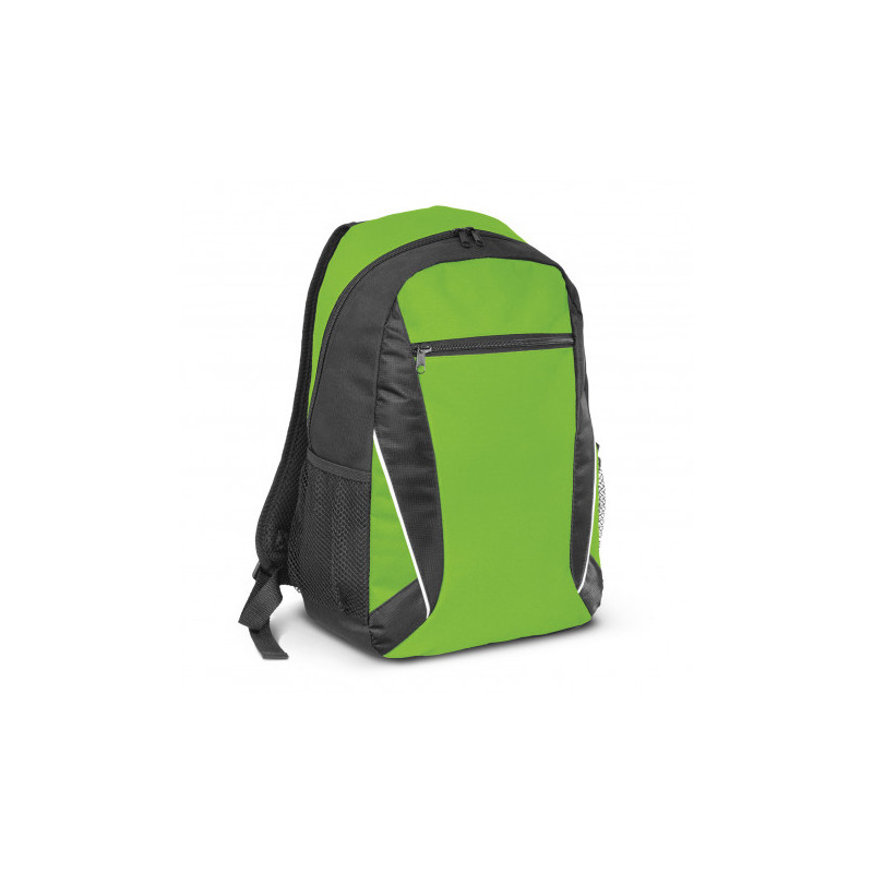 Value for money and versatile, the Twist provides a bright, practical backpack alternative. 600D polyester|Zippered main compartment|Feature contrast twist panel on front and right side|Pen or carabiner loop|Elasticated side mesh pocket|Adjustable shoulder straps|Top grab handle