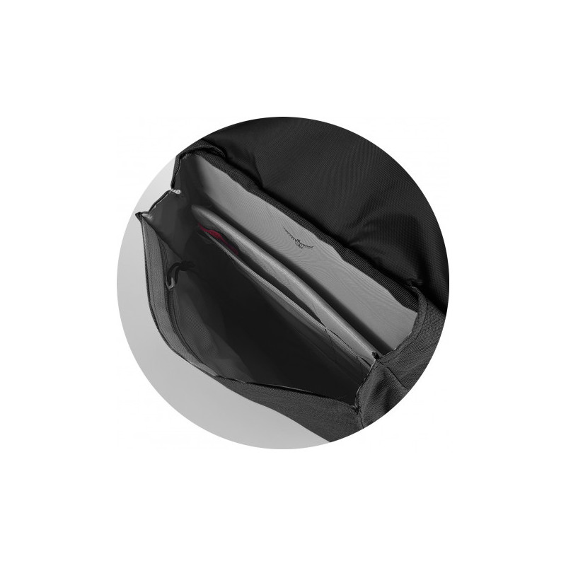 The Zippered main compartment has a padded laptop sleeve and elastic organiser band to hold your mobile accessories, including power banks and cables.
