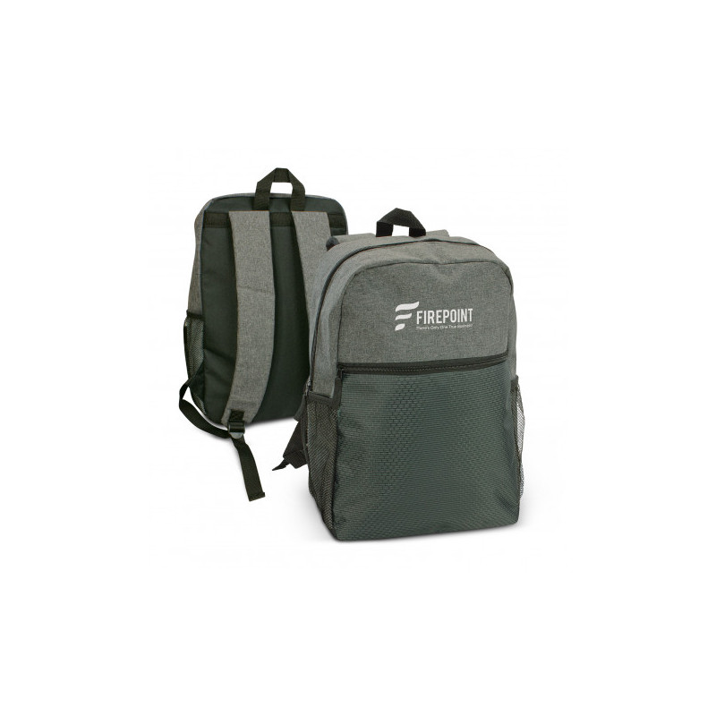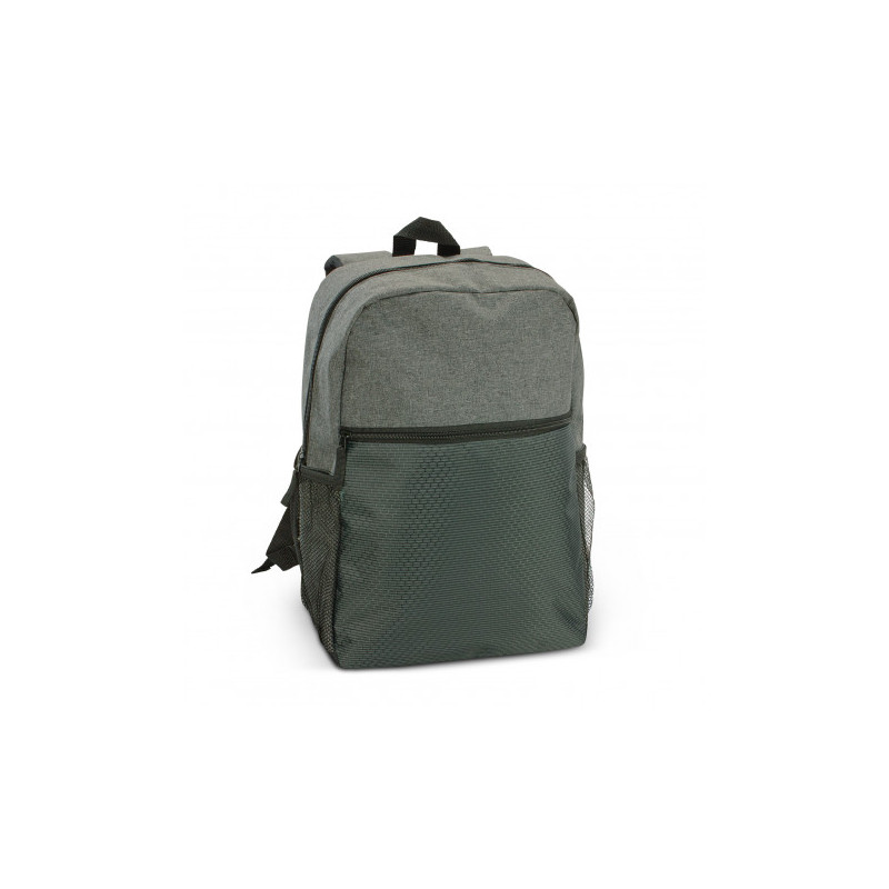 Affordable backpack which is manufactured from 600D polyester. It has a zippered main closure and adjustable woven shoulder straps with padding. Other features include a large zippered front pocket, a woven carry handle and a mesh drink bottle holder.