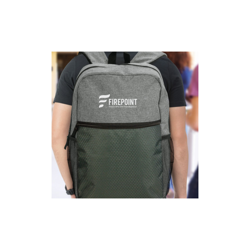 Attention-grabbing backpack with outstanding design and superb functionality. It is manufactured from a stunning two-tone combination of patterned 300D polyester with a 600D polyester back panel and 210D lining. Summit has a large zippered main compartment with a padded laptop sleeve and two smaller external compartments with zippers. It has a padded back...