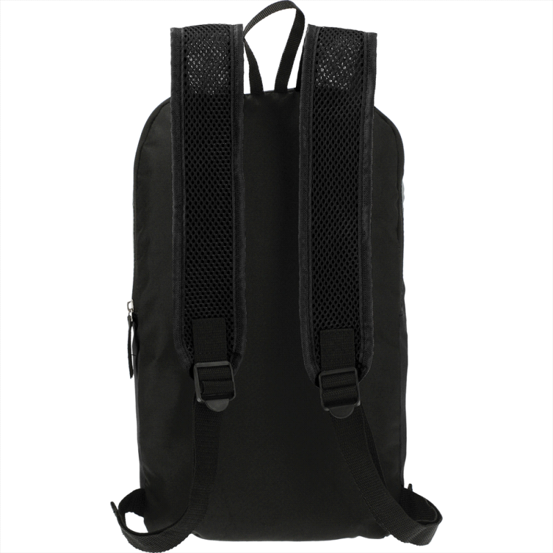 With its clean lines, this stylish and functional backpack has plenty of features to ensure that everything you need to carry, works. 300D polycanvas|Front zippered pocket|Large main zippered compartment for maximum storage|Padded computer compartment fits up to a 15” laptop|Padded and adjustable shoulder straps|Padded back for additional comfort|Side...