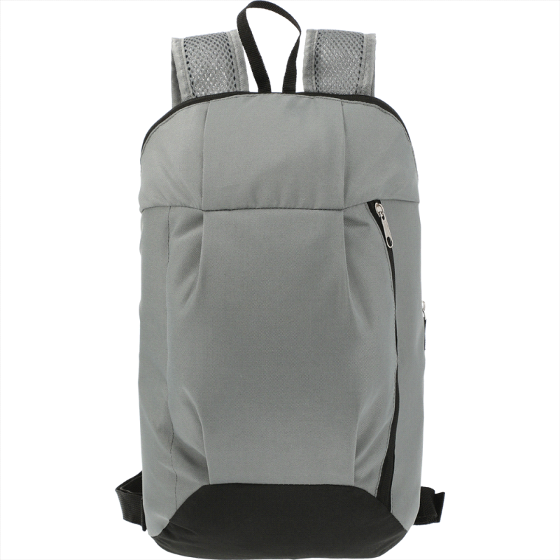 Affordable backpack which is manufactured from 600D polyester. It has a zippered main closure and adjustable woven shoulder straps with padding. Other features include a large zippered front pocket, a woven carry handle and a mesh drink bottle holder.