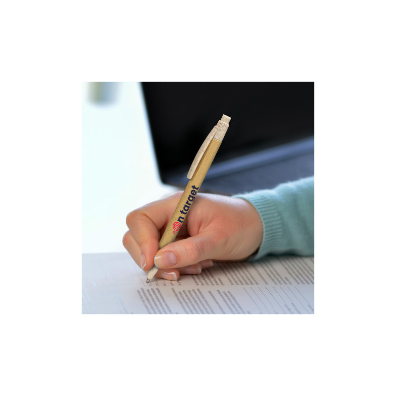 Demonstrate a pragmatic approach to the needs of the future with the Cara Wheat Ballpoint Pen. Constructed with eco-friendly wheat. Available with pad print, full colour digital print, and rotary screen print. Click action, retractable ballpoint - black ink