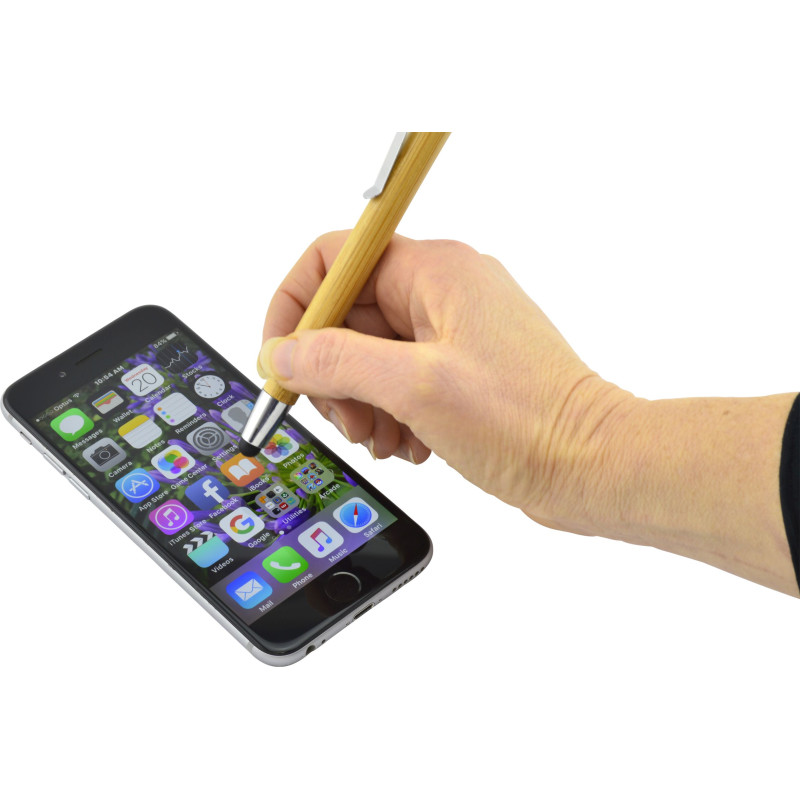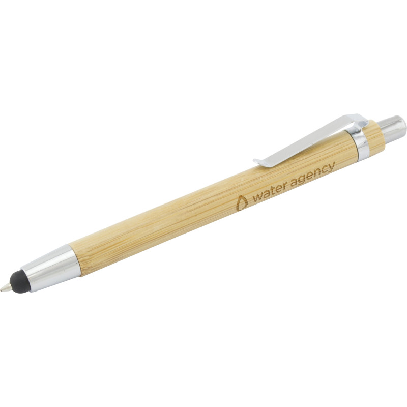 Sporting a bamboo and chrome construction, the Julia Bamboo Ballpoint Pen sports an eco-conscious look without sacrificing on style. Available with pad print and rotary screen print. Click action, retractable ballpoint - black ink