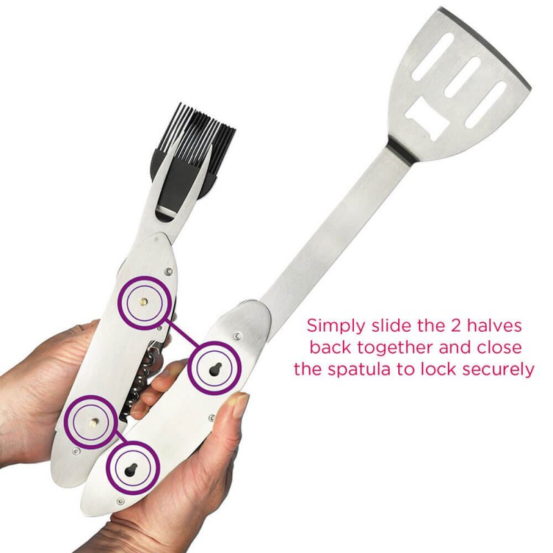 Comes with spatula, fork and tongs made from high grade stainless steel and comfortable silicon grips.
