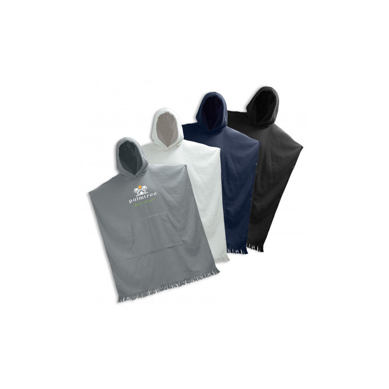 Adult size hooded towel which is ideal for staying warm and dry after swimming or at the beach. It is manufactured from soft 250gsm microfibre and can be branded on one side with edge-to-edge full colour print. There is a choice of eight overlocking thread colours. A production lead time of 30 working days applies to this product by air freight and larger...