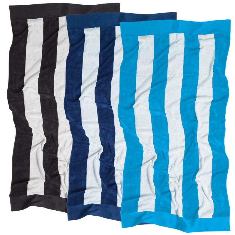A colourful and fun way to hit the beach, the Cabana towel is a perfect summer holiday companion. Ideal for the beach, pool and bathroom. 450gsm terry towelling|Cotton border on all sides|Bold modern styling and colours|Large decoration area|Fret area is perfect for screenprinting or Supacolour application