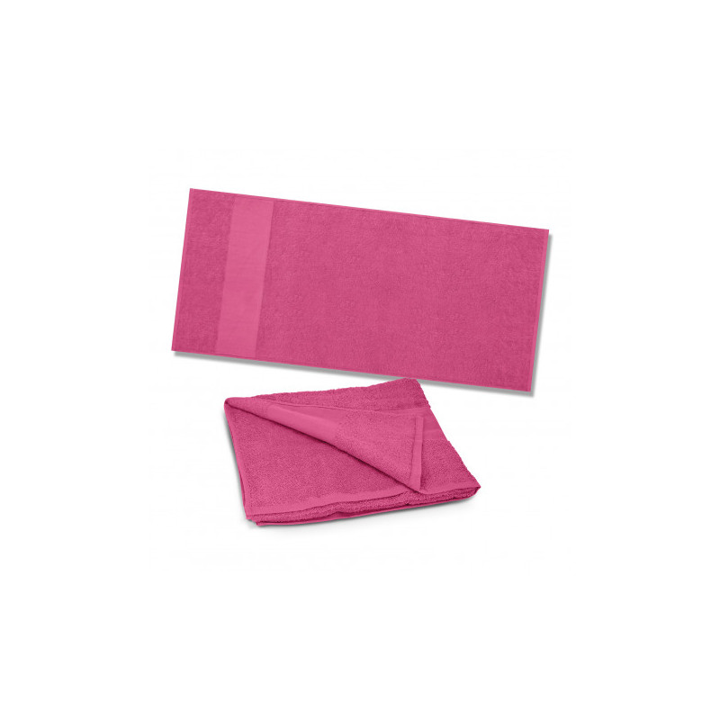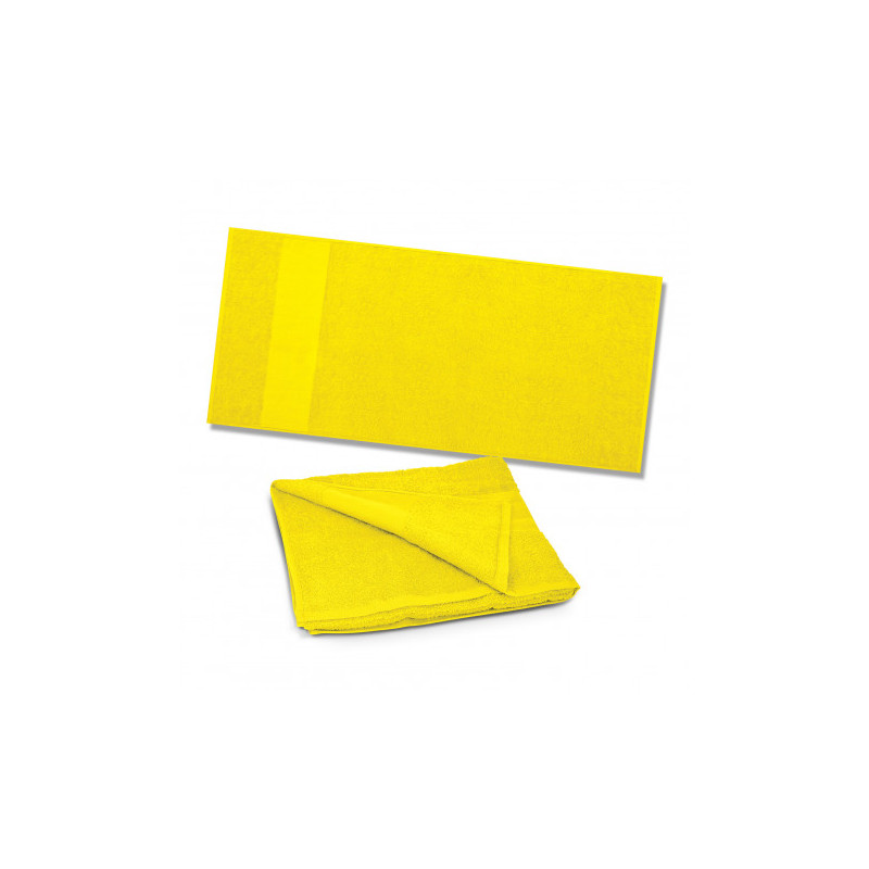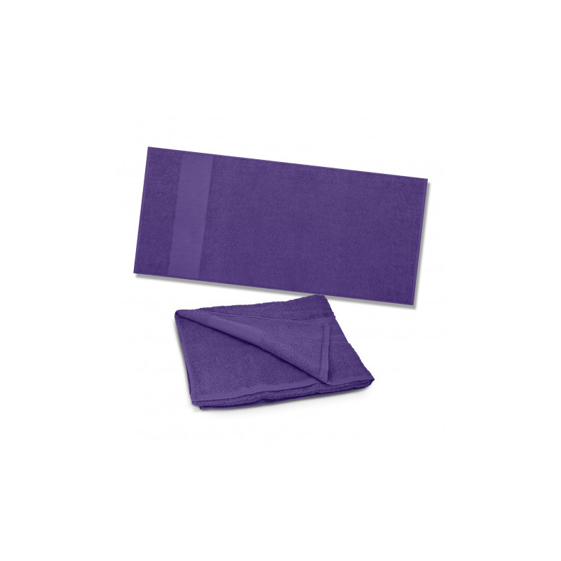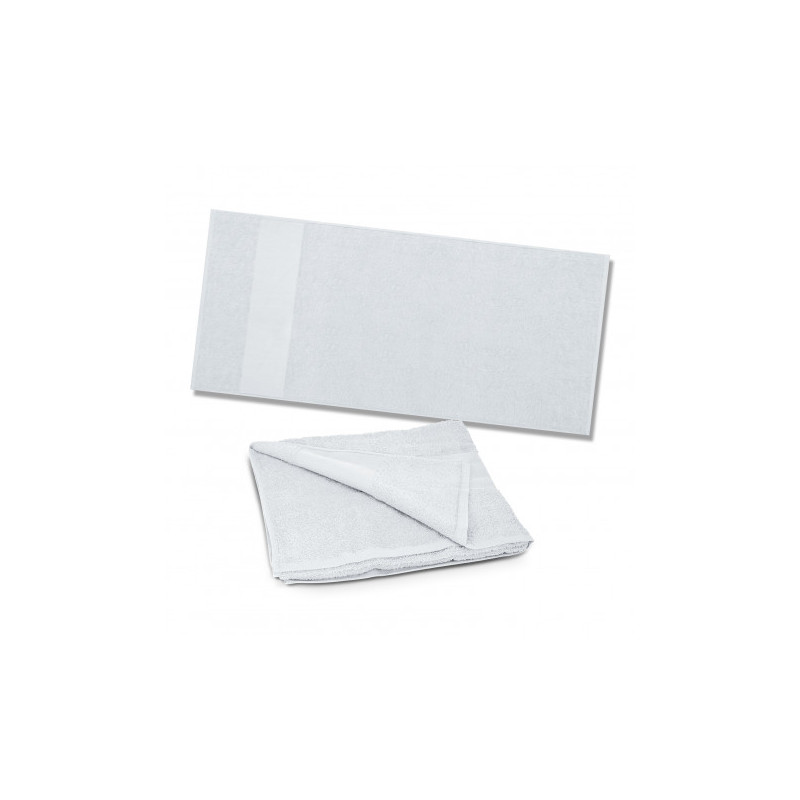 Compact 120cm x 60cm towel which is manufactured from soft 350gsm cotton terry towelling. It has a smooth fret area for branding.