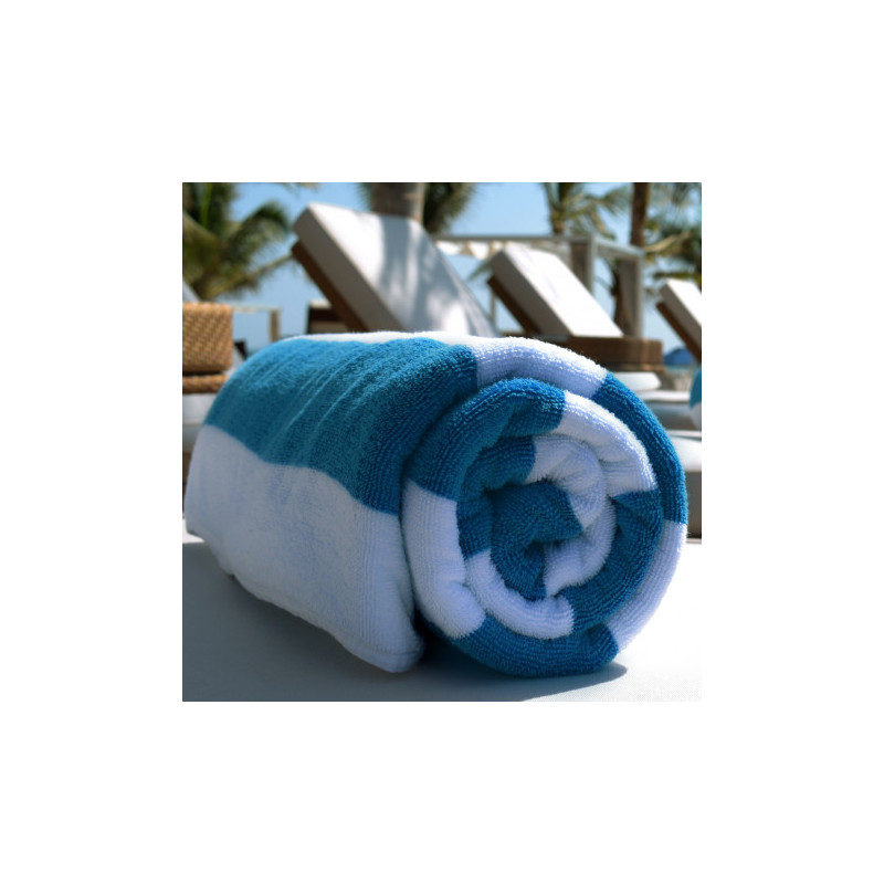 A colourful and fun way to hit the beach, the Cabana towel is a perfect summer holiday companion. Ideal for the beach, pool and bathroom. 450gsm terry towelling|Cotton border on all sides|Bold modern styling and colours|Large decoration area|Fret area is perfect for screenprinting or Supacolour application