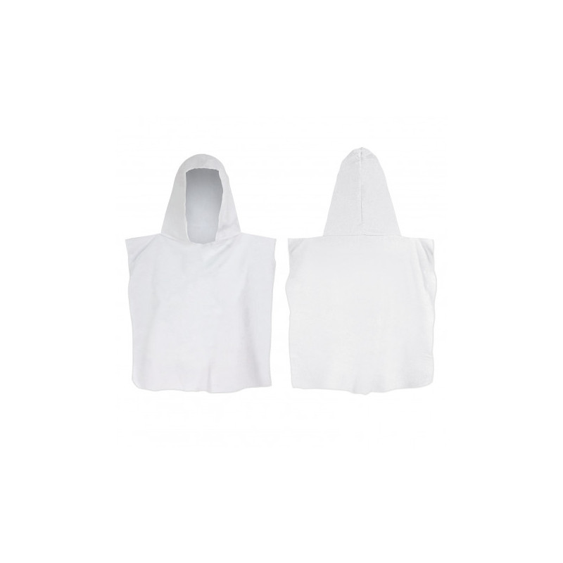 Convenient hooded towel made of 320GSM, 100% cotton. With a fringe trim and kangaroo pocket, this towel is both absorbent and stylish. It has side snaps, terry on the inside, and a flat weave on the outside.