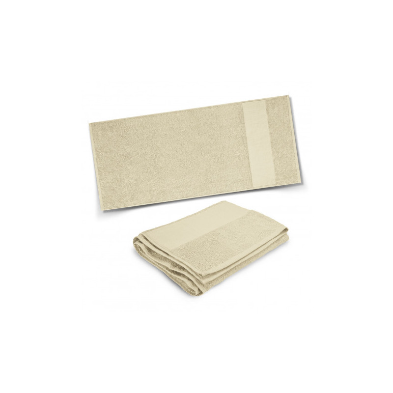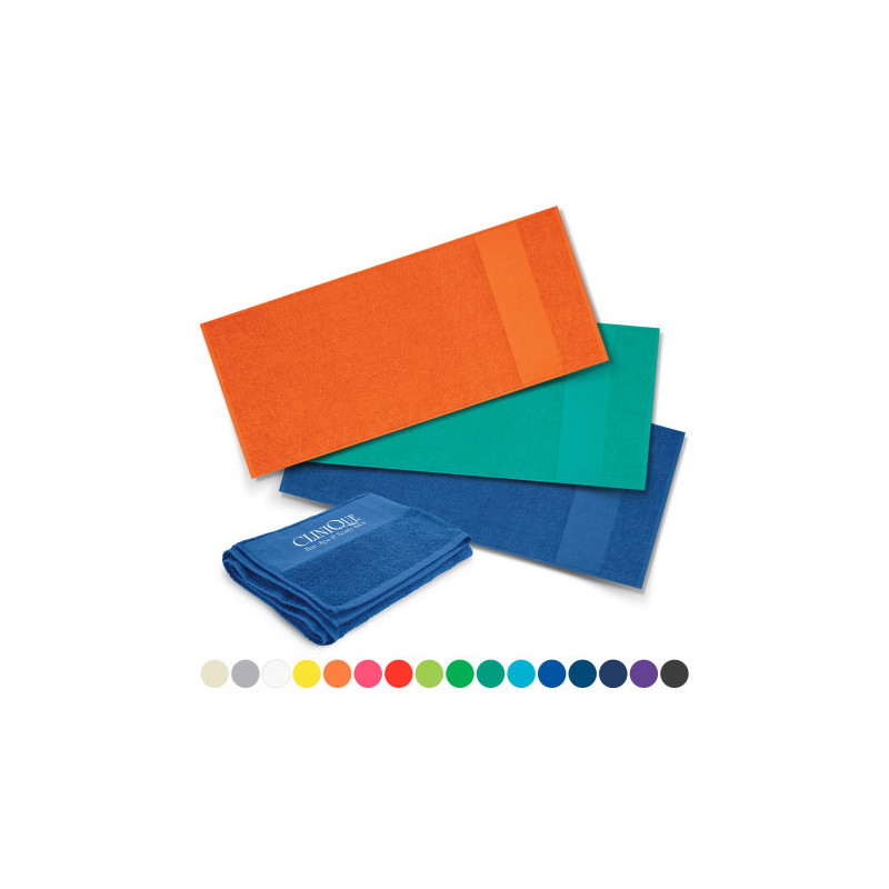 Luxurious 700mm x 1400mm beach towel which is manufactured from 420gsm cotton terry towelling. It has a smooth fret area for branding.