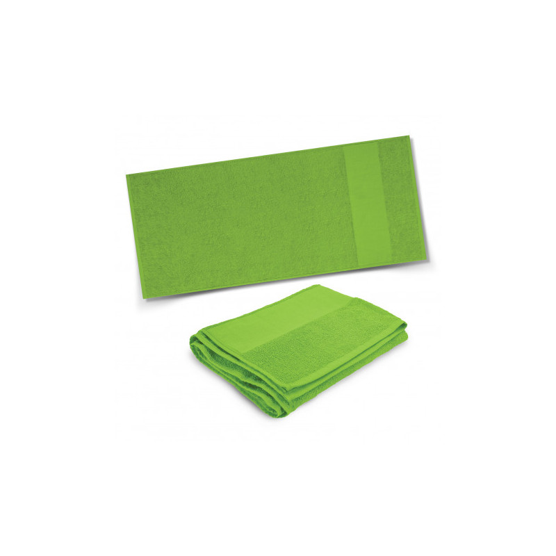 Soft to the touch and in a wide range of funky colours, these towels spell fun for any occasion! 380gsm terry velour with rapier finish|Cotton border on all sizes|Wide range of colours|Large decoration area|Soft pile allows for all-over embroidery whilst the lower fret area is perfect for Supacolour