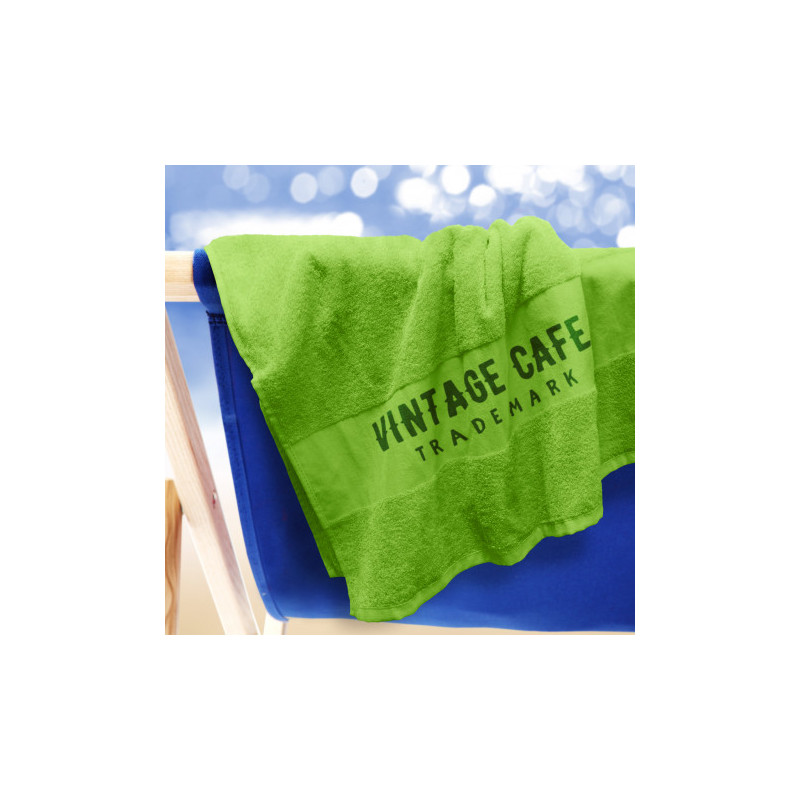 Luxurious 140cm x 70cm beach towel which is manufactured from soft 420gsm cotton terry towelling. It has a smooth fret area for branding.