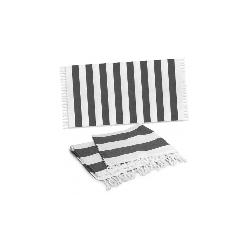 Large 140cm x 70cm beach towel which is manufactured from fast-drying 240gsm polyester with optional white or black tassels. It can be branded on one side with edge-to-edge full colour print and there is a choice of eight overlocking thread colours. A production lead time of 30 working days applies to this product by air freight and larger orders can be...
