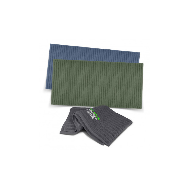 Compact 120cm x 60cm towel which is manufactured from soft 350gsm cotton terry towelling. It has a smooth fret area for branding.