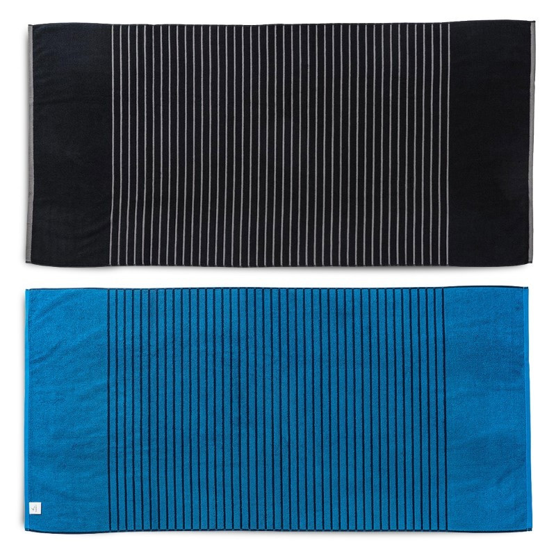 Get ready for the regatta! The Striped Towel offers versatility from river races to the beach. 380gsm terry towelling|Cotton border on all sides|Soft pile allows for all-over embroidery|Contrasting white and coloured stripes run full length of the towel
