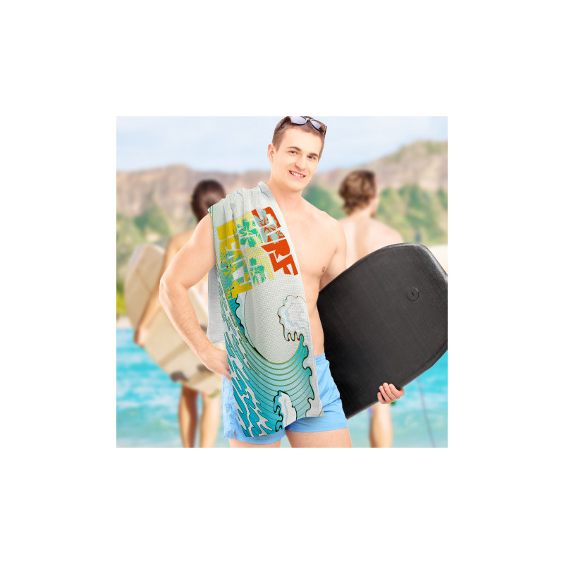 Your brand is sure to get the exposure it deserves with this Sublimated Beach Towel. The entire towel is a blank canvas for you to make your mark, it is only limited by your imagination!Minimum order: 20 pcs 320gsm Polyester/Cotton Beach Towel|Print side: 100% Polyester|Reverse side: 100% Cotton|Edge to Edge Sublimation available