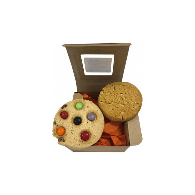 Small Kraft Window Box Filled With X2 Big Cafe Style Biscuits/Cookies (50G Each).