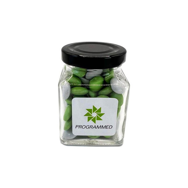 Minimum Order Quantities for 100g Chocolate Beans Packed in Small Glass Square Jars
