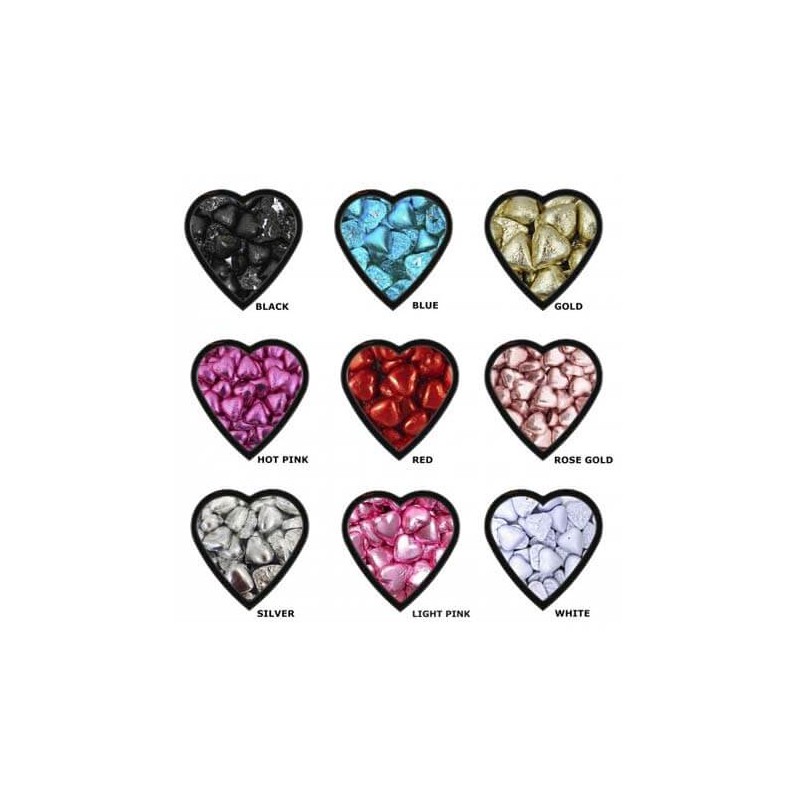 Available Colours: Full Colour Sticker. Foil Colours: Black, Blue, Gold, Hot Pink, Light Pink, Red, Rose Gold, Silver & White. Made In Italy Foil Chocolate Hearts