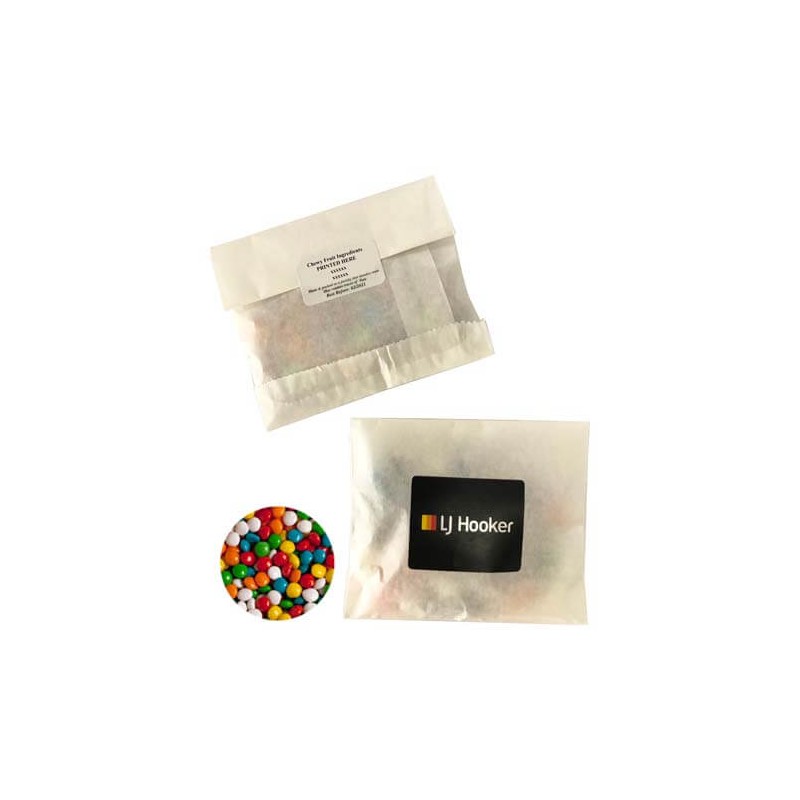 50G Chewy Fruit (Skittle Look Alike) Bag Placed inside Bizcard Boxbusines Card: Provided By Customer. Confectionery Corner Will insert into Box ingredient info: On Each Item