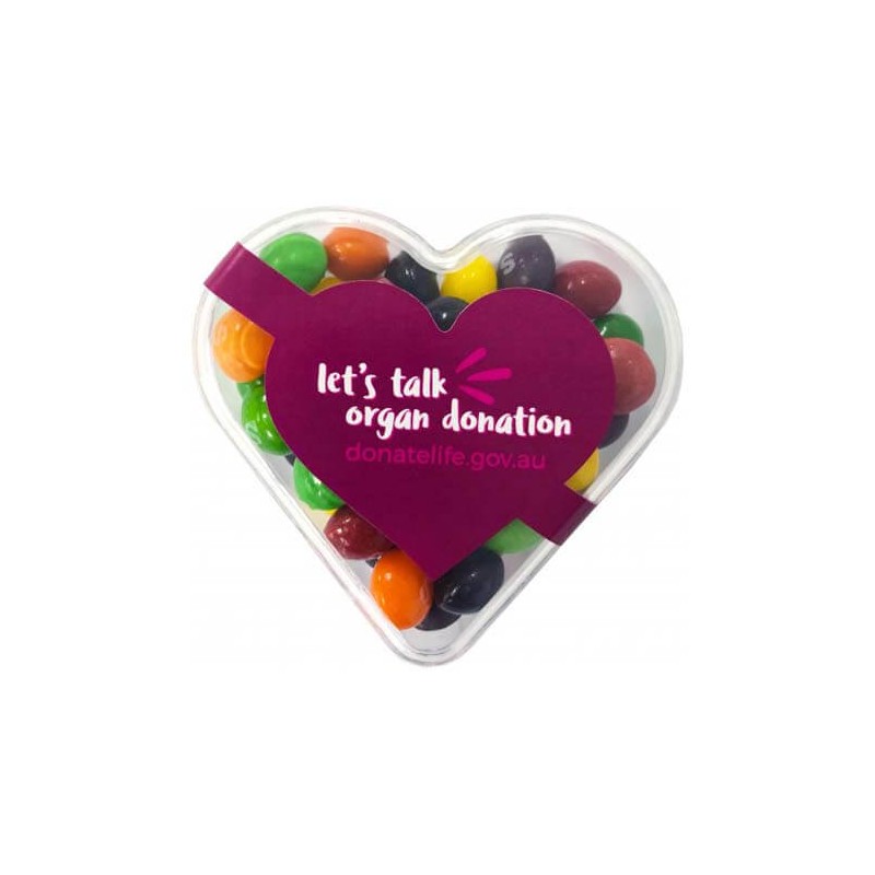 Minimum Order Quantities for 50g Skittles Packed in Acrylic Hearts