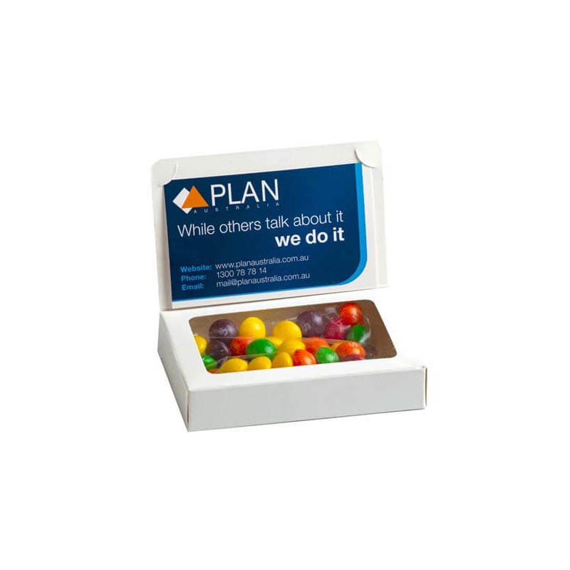 We know how important it is to see and feel a product before you buy, especially when ordering merchandise for conferences, for corporate and promotional gifts. We offer samples of our 50g Skittles Packed in Bizcard Box to help you make an informed decision.