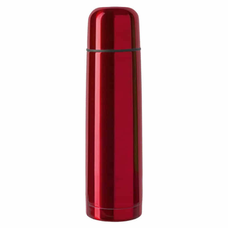 Stainless-steel insulated flask with Polypropylene lid and silicone seal. This powder-coated flask has a screw-on lid and a stainless-steel carry handle.