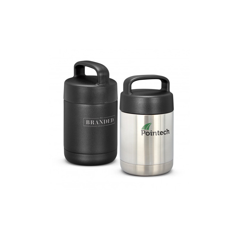 A 500ml double wall constructed thermal flask with a stainless steel interior and exterior. The screw on cap doubles as a small cup or tumbler and there is a leak proof push on/off locking stopper for easy pouring. Carrying case packed separately.