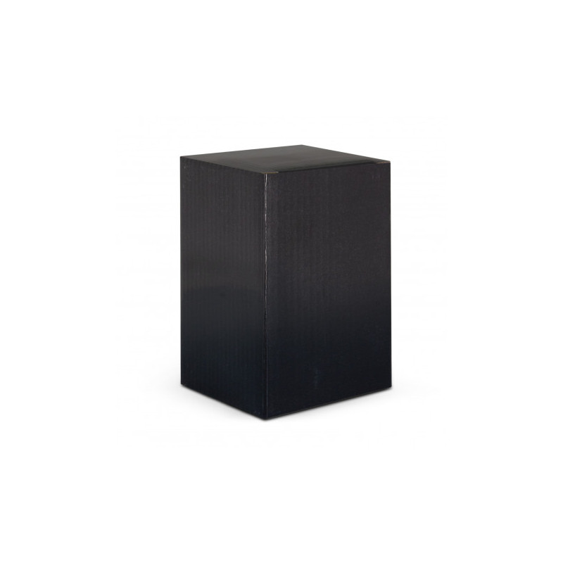 Flask Gift Set with Four Stainless Steel Shot Cups, One 175ml Stainless Steel Flask, and One Funnel. Displayed in Two Piece Black Gift Box. Each Gift Box is Protected in a White Paper Sleeve During Shipping.