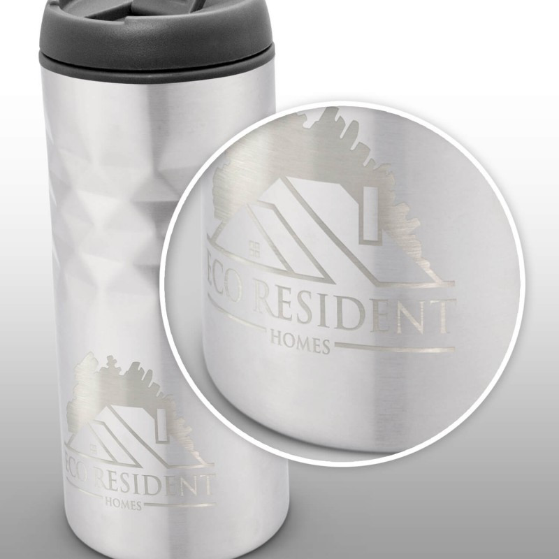 500ml BPA free vacuum insulated double wall stainless steel flask, it has a screw on stainless steel lid and push button operation, keeps hot for 12 hours and cold for 24 hours, metallic colour finishing and laser engrave to a natural silver colour. This flask is not dishwasher safe, handwashing is recommended.