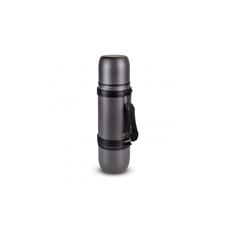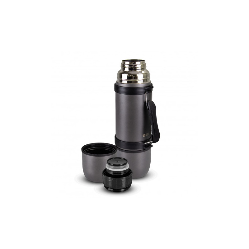 A 500ml double wall constructed thermal flask with a stainless steel interior and exterior. The screw on cap doubles as a small cup or tumbler and there is a leak proof push on/off locking stopper for easy pouring. Carrying case packed separately.