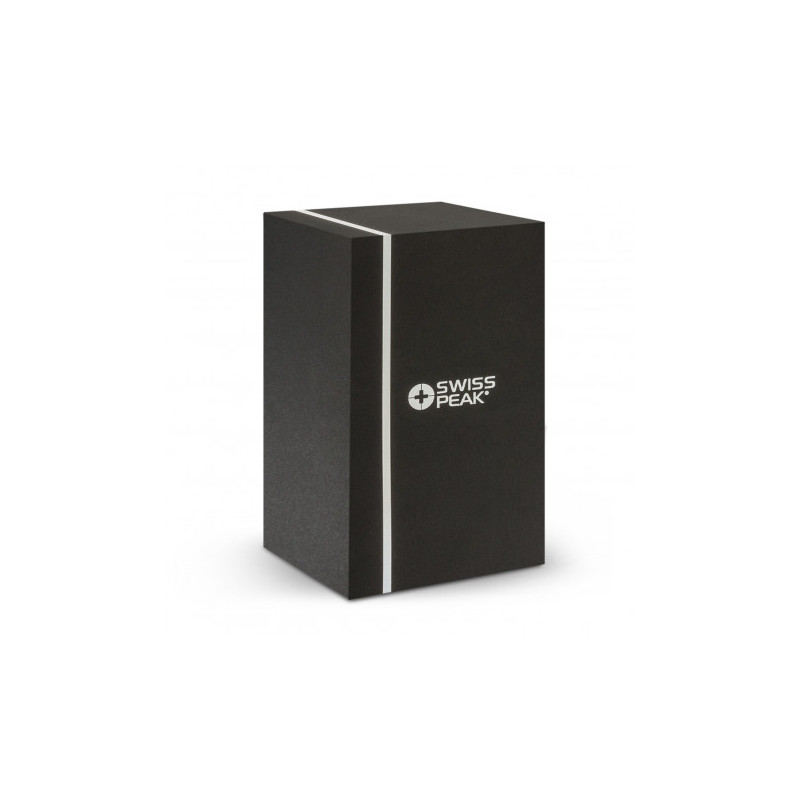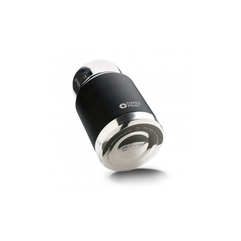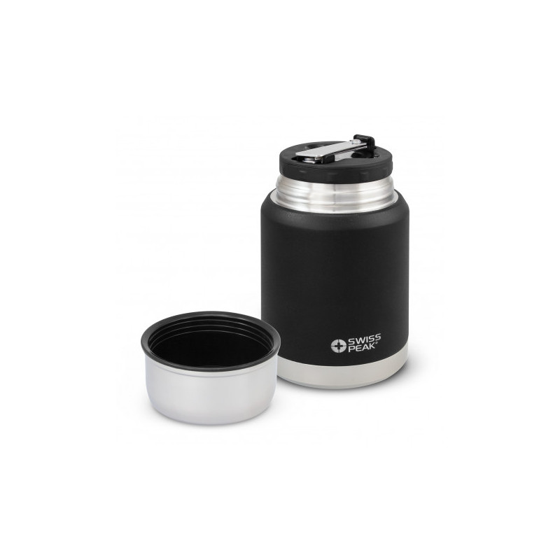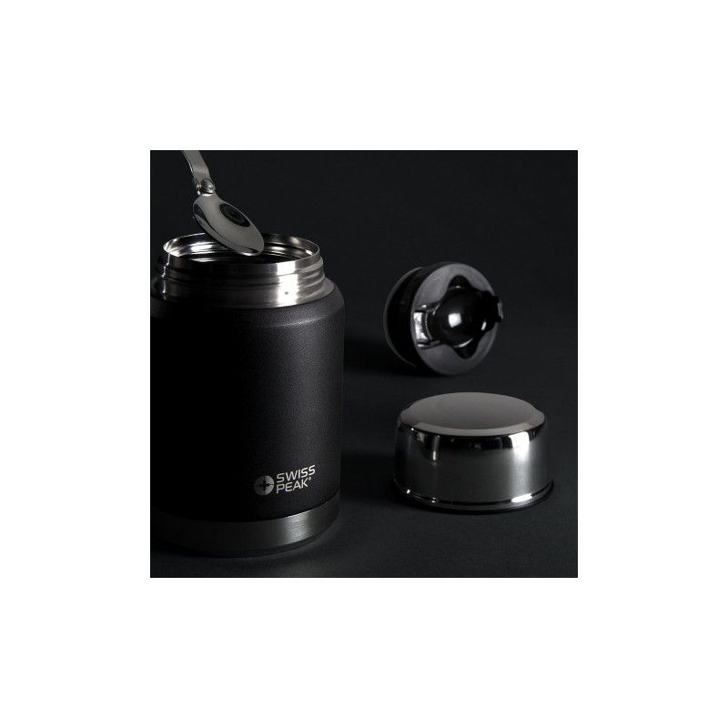 Swiss Peak has design and functionality in mind with this 700ml Vacuum flask. This Stainless-steel double wall vacuum flask is paired with a hang grip and a shoulder strap for easy transportation. Fitted with two matching cups making for an optimal drinking experience. This flask is leak-proof, and handwashing is recommended. The Swiss Peak logo is...
