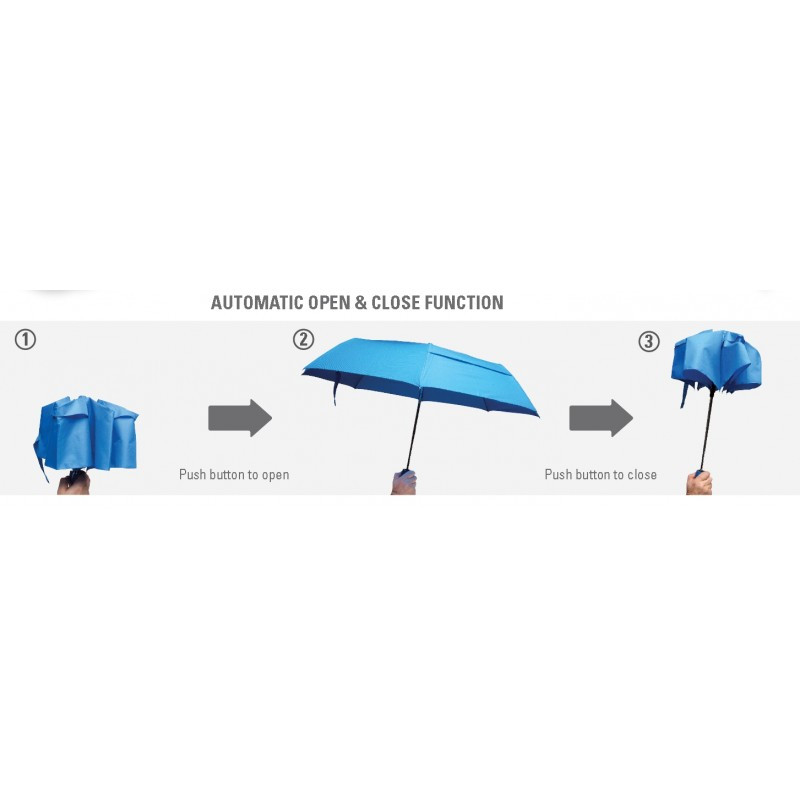 The practical Boutique umbrella will impress with its convenient size. Compact and robust, and with its nifty auto open/close feature makes it a handy companion for people on the go. The Boutique umbrella has high quality pongee fabric, a 42 canopy, strong auto-opening, SPF 30+ rating, and 3-section steel shaft and ribs. 190T high quality pongee fabric|3...