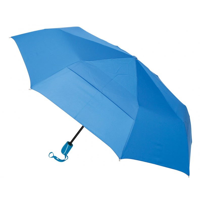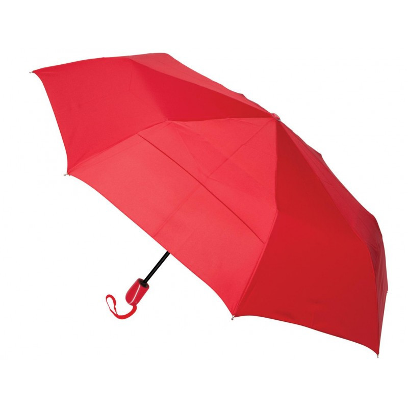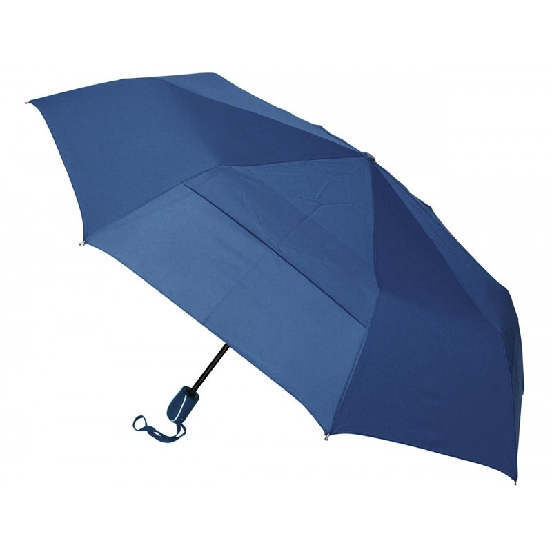 The tri-folding Director Umbrella sports a generous canopy while folding down to a compact 33cm. It has an eight-panel vented pongee canopy with 57cm fibreglass ribs and a steel shaft. Other features include automatic opening and closing, a woven carry handle and a matching pongee drawstring sleeve.