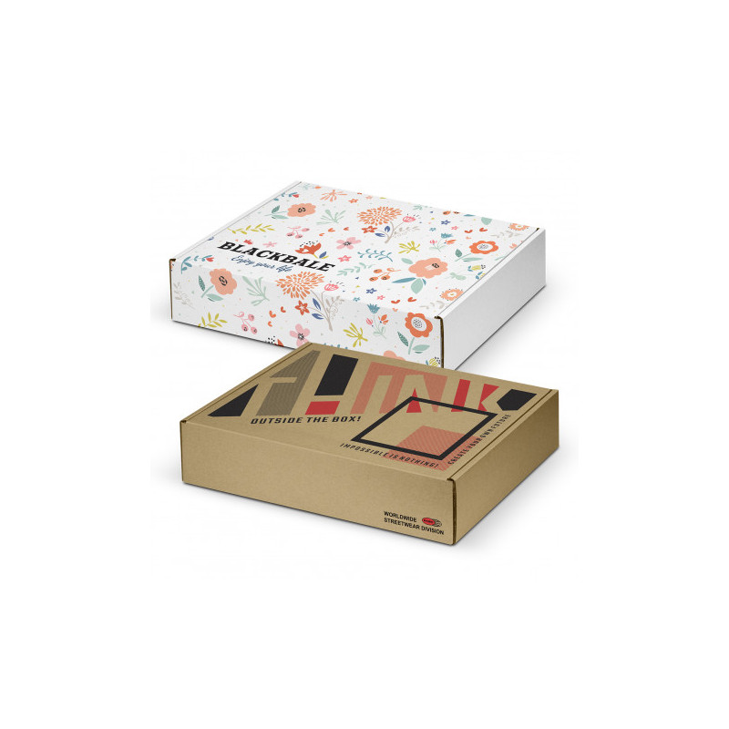 Professional custom presentation box made from durable 1.5mm e-flute corrugated cardboard to provide reliable protection during transit. This box is perfect for gifting and building strong brand recognition. Featuring a convenient hinged lid, selected panels of the box can be customised with CMYK digital print. It is supplied flat-packed for easy postage...