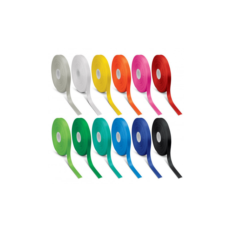 25mm wide polyester ribbon with branding in one colour on one side. It is supplied in convenient rolls and the price is quoted per metre. A production lead time of 20 working days applies to this product by air freight. Must be ordered in quoted quantities per roll.