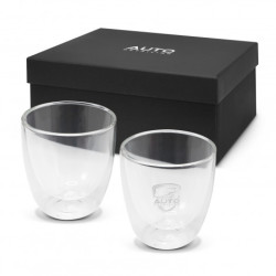 Exquisite set of two 310ml double wall glasses which are presented in a black gift box. They are manufactured from borosilicate glass which is incredibly light and very strong. The double wall construction keeps drinks hot for longer while the outside of the glass remains comfortable to hold and it keeps drinks cold without messy condensation. They are...