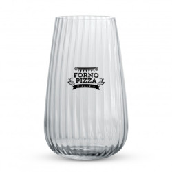 Art-deco inspired 630ml glass tumbler with a stackable design. This tumbler is made with soda lime glass and can be presented in an optional natural gift box.