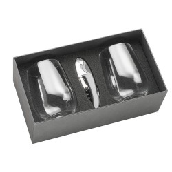 Two piece wine glass set with waiters friend. Supplied in a classy two part gift box with foam insert. 430ml capacity.