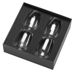 This set of four wine glasses comes beautifully boxed in a black two pieces gift box with foam insert.