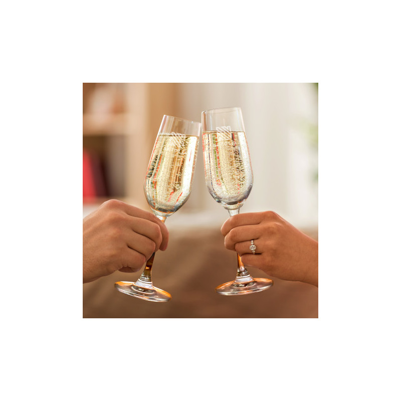 Elegant 170ml Bormioli Rocco flute which is manufactured in Italy from toughened glass that laser engraves to a natural etch. This product is not dishwasher safe and handwashing is recommended.