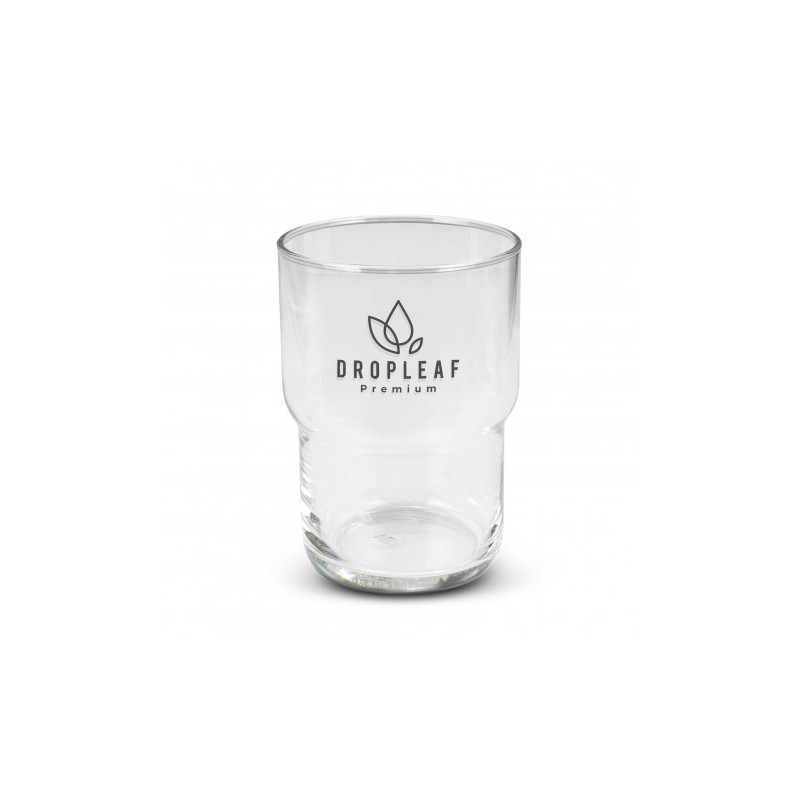 Small 245ml glass tumbler. It laser engraves to a natural etch and can be presented in an optional black gift box. This product is not dishwasher safe and handwashing is recommended.